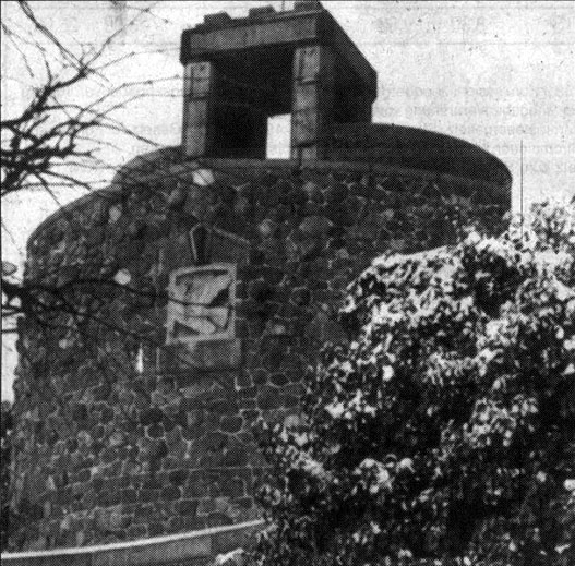 Kriegseinwirkungen im letzten Kriegsjahr zerstört und nachher abgetragen, musste die Bismarckwarte durch Entfernen aller Inschriften und der Porträtbüste des Reichsgründers und deren Ersatz durch eine