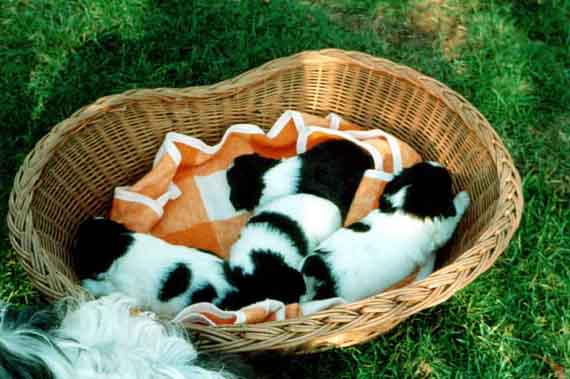 Unser zweiter Wurf kam am 12.10.1994 auf die Welt. Und es kam, wie es kommen musste, fünf kräftige Burschen und keine einzige Hündin.