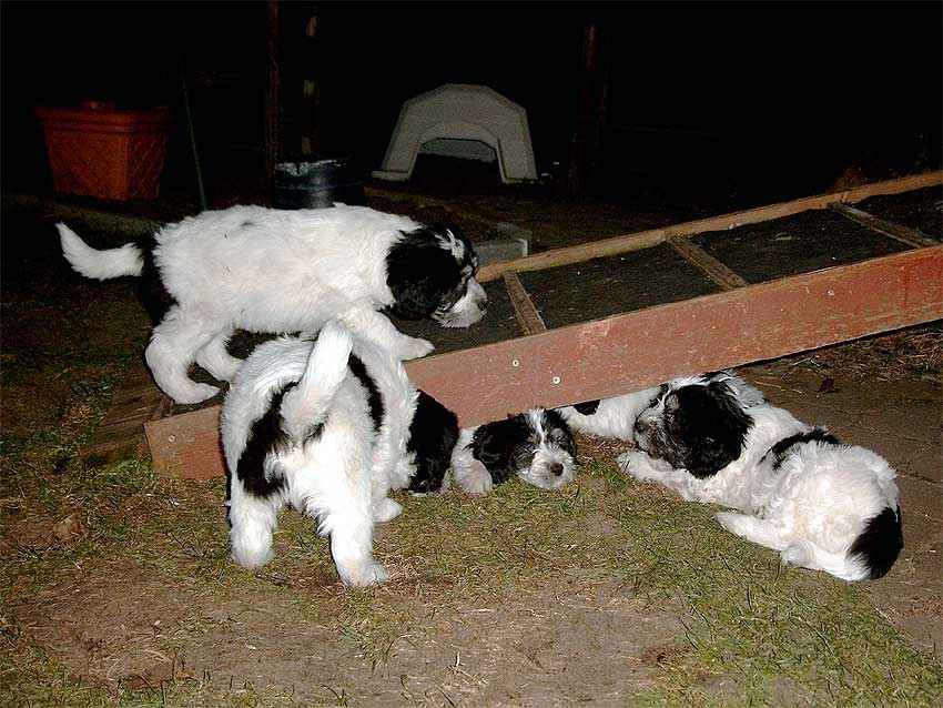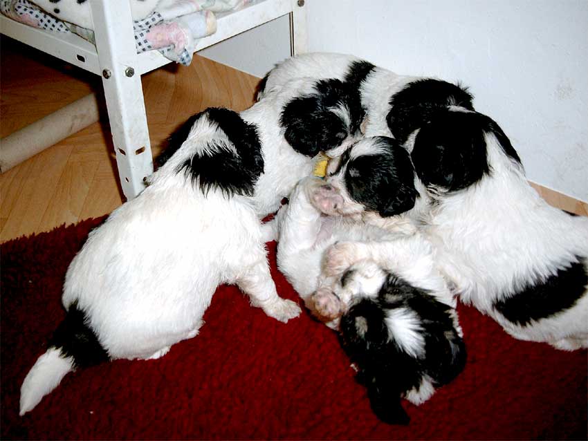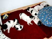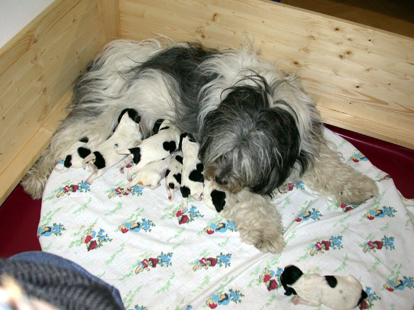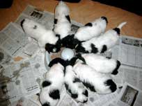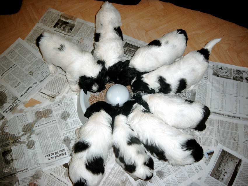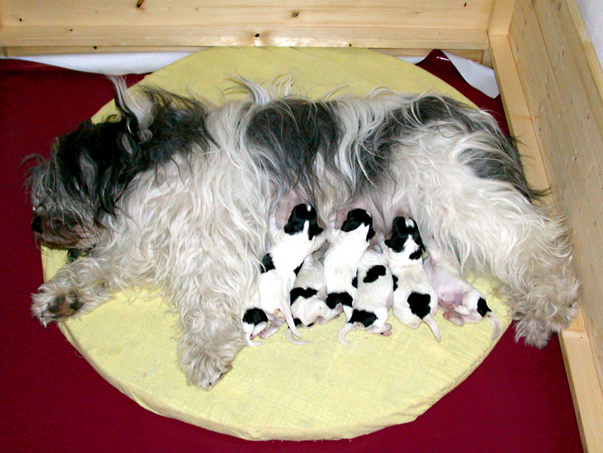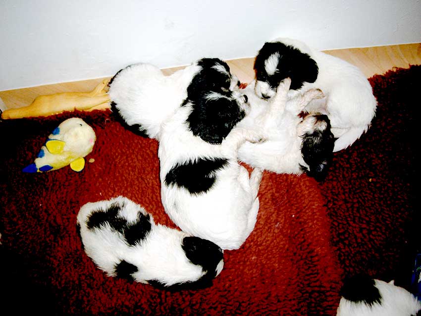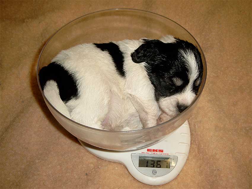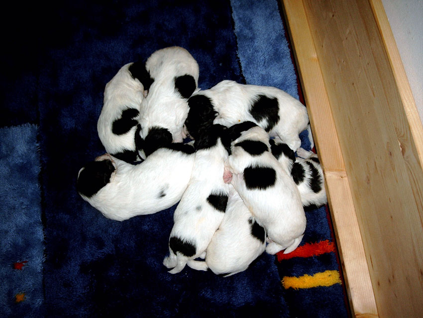 Dezember erblickten wir - 2 Weiber und 6 Kerle - das Licht der Welt. Es war “Patkas” erster Wurf. Frauchen machte große Augen, weil wir trotz unserer Anzahl so tolle Gewichte auf die Waage brachten. Wir strammen Jungen wogen alle um die 340 Gramm. Ha ! Da konnten uns unsere Schwe- stern lange nicht das Wasser reichen.