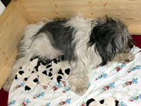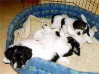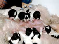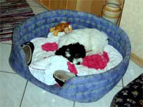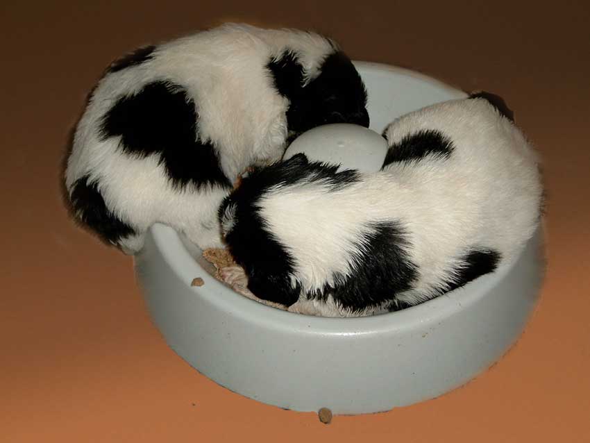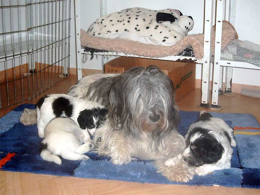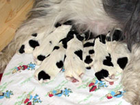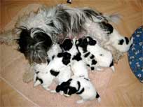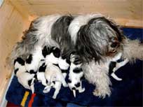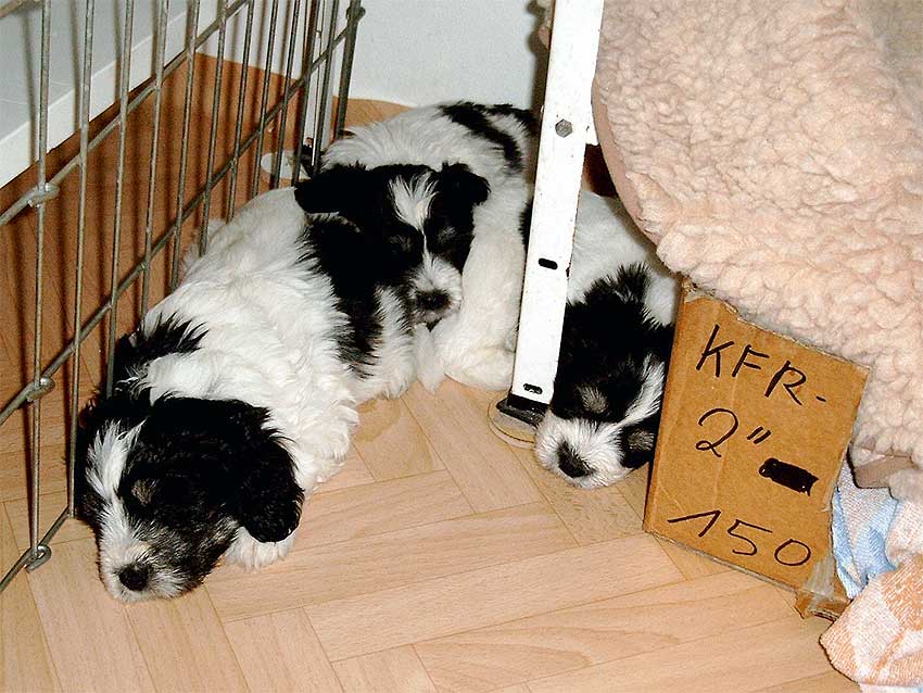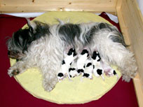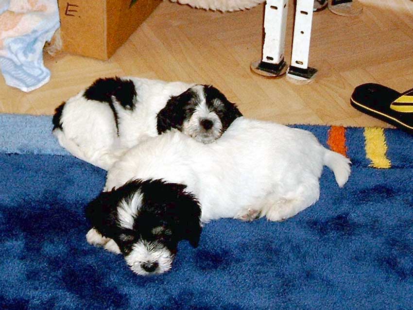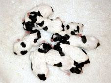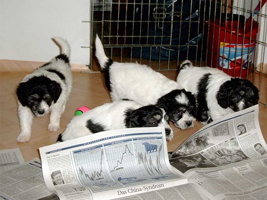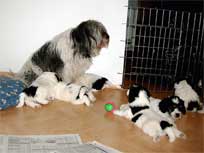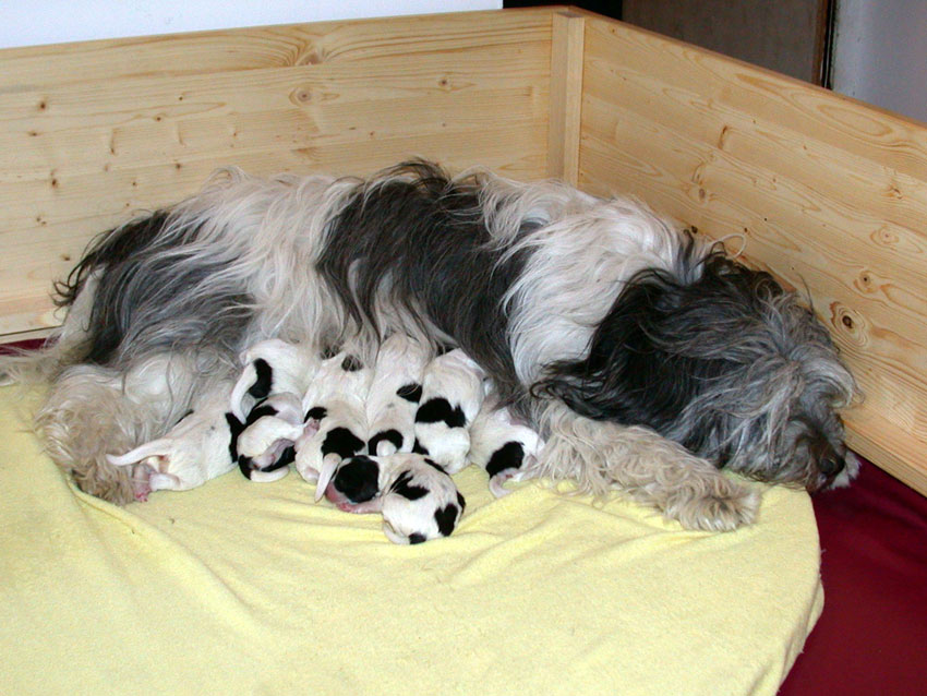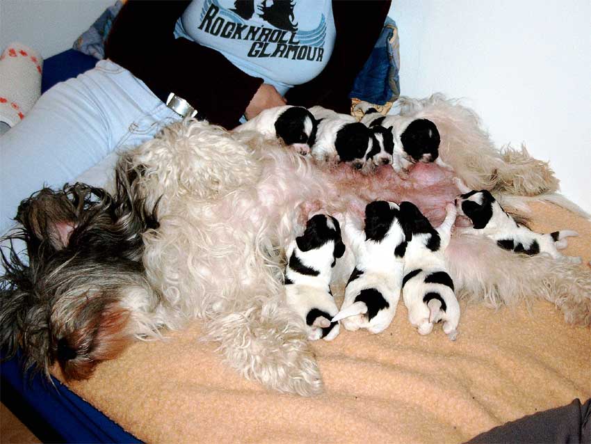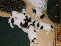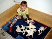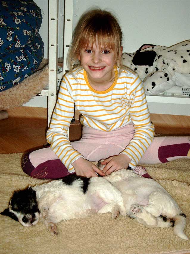 Dezember erblickten wir - 2 Weiber und 6 Kerle - das Licht der Welt. Es war “Patkas” erster Wurf. Frauchen machte große Augen, weil wir trotz unserer Anzahl so tolle Gewichte auf die Waage brachten. Wir strammen Jungen wogen alle um die 340 Gramm. Ha ! Da konnten uns unsere Schwe- stern lange nicht das Wasser reichen.