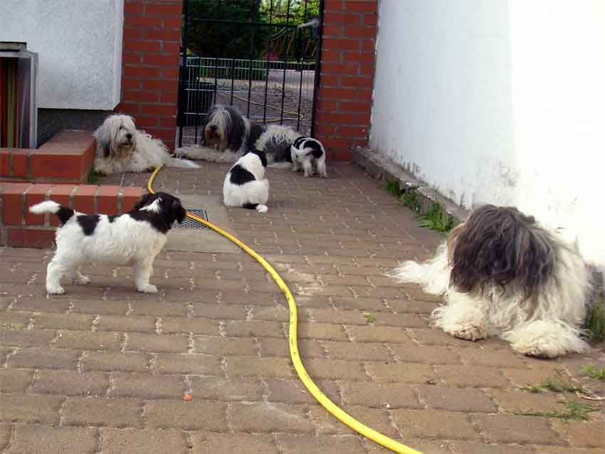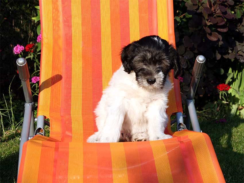Wie man auf den Fotos sieht, stand bei herrlichem Pfingstwetter “ Frische - Luft -schnuppern” auf dem Programm. Unsere Halbschwester Wanda fand uns auch schick. Ascha und Dworak genügt ein kurzer Hallo- Schlecker. Mittlerweile beträgt unser Gewicht zwischen 930 und 1040 gr. und fremde Eindrücke bereiten uns keine Probleme. Nur Minnie hinkt etwas hinterher. Aber die ist ja schließlich auch ein Mädel.