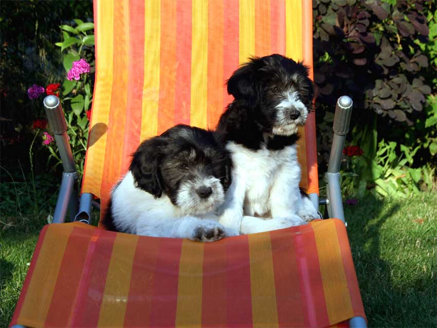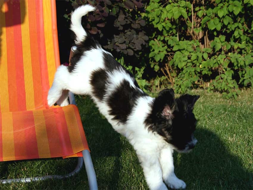 Die Zeit vergeht wie im Fluge. Mittlerweile wiegen wir zwischen 2600 und 3100 gr und wir sind 5 Wochen alt. Es scheint sich der Jahrhundertsommer anzukündigen. Es ist so heiß, dass wir in den Mittagsstunden in unser Schlafzimmer gehen, um hier ordentlich schlafen zu können. Aber toben können wir immer und in jeder Lebenslage, wie man auf den Fotos ja sehen kann. Die 2. Entwurmung haben wir hinter uns gebracht. Und unser Auslauf wird jeden Tag größer. Marlow, Medi und Merlin suchen noch ab Ende Juni ein schönes Zuhause.